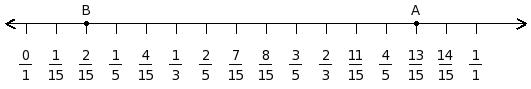 Find the difference of the rational numbers at the points labelled with letters K and L