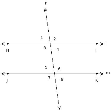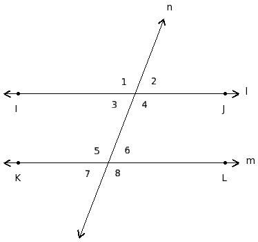 ∠1 , ∠5 ; ∠2 , ∠6 ; ∠3 , ∠7 ; ∠4 , ∠8