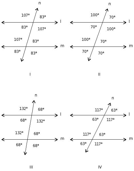 ∠1 , ∠4 ; ∠2 , ∠3 ; ∠5 , ∠8 ; ∠6 , ∠7