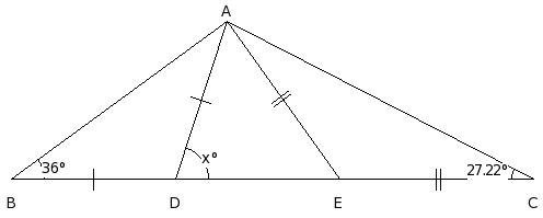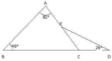 In the following figure, one side of a triangle has been produced. Find all the angles of the triangle