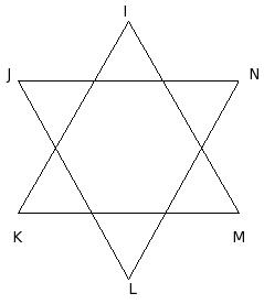 In the given two equilateral triangles, find ∠I + ∠K + ∠M + ∠J + ∠L + ∠N .