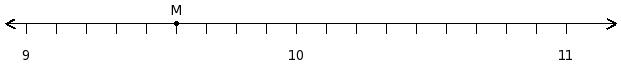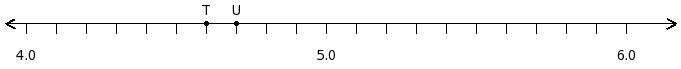 Find the difference of the decimal numbers at the points labelled with letters T and U