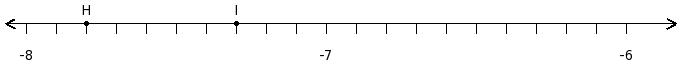 Find the difference of the rational numbers at the points labelled with letters H and I