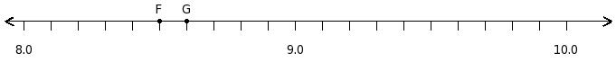 Find the product of the decimal numbers at the points labelled with letters F and G
