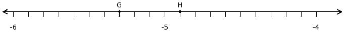 Find the difference of the rational numbers at the points labelled with letters G and H