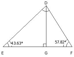 In the given figure , if GD ⟂ EF and ∠DEG = 43.63°, find ∠FDG