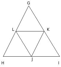 In the given figure, the area of the △GHI is x sq.cm. J,K,L are the mid-points of the sides HI , IG and GH respectively. The area of the △JKL is