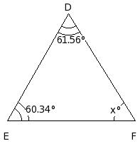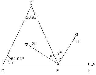 In the given figure, △EFG is a triangle in which ∠F = 67.12° and ∠G = 53.25°.