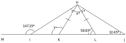 In the given figure, if HK = LH, find the values of x , y , z and t