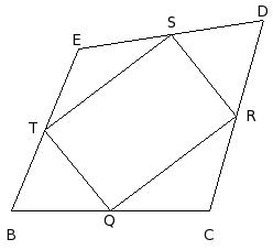 BCDE is a quadrilateral. Q, R, S and T are mid-points of BC, CD, DE and EB respectively.If BD = 29 cm and CE = 19 cm, find the measure of the sides of QRST.