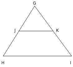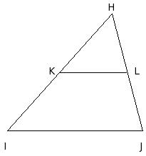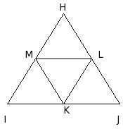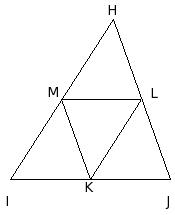 In the given figure, the area of the △HIJ is x sq.cm. K,L,M are the mid-points of the sides IJ , JH and HI respectively. The area of the △KLM is