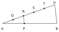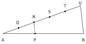 In the given figure, if A, Q, R, S, T, U are equidistant and RP ∥ UB and AB = 22 cm and AP = 9 cm. Find PB