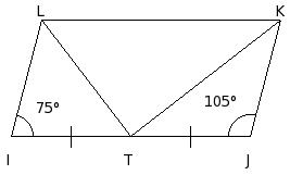In the given figure, IJKL is a parallelogram such that T is the mid-point of IJ and IJ = 2LI. Find ∠LTK