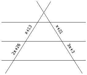 In the given figure, three lines l , m and n are such that l ∥ m ∥ n.