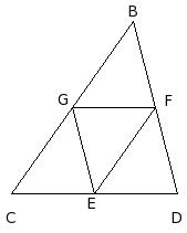 In the given figure, the area of the △BCD is x sq.cm. E,F,G are the mid-points of the sides CD , DB and BC respectively. The area of the △EFG is