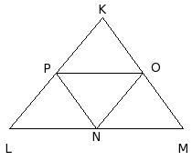 In the given figure, the area of the △KLM is x sq.cm. N,O,P are the mid-points of the sides LM , MK and KL respectively. The area of the △NOP is