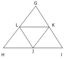 In the given figure, the area of the △GHI is x sq.cm. J,K,L are the mid-points of the sides HI , IG and GH respectively. The area of the △JKL is