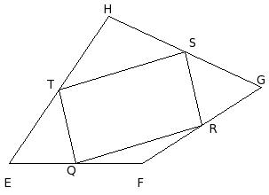 EFGH is a quadrilateral. Q, R, S and T are mid-points of EF, FG, GH and HE respectively.If EG = 30 cm and FH = 17 cm, find the measure of the sides of QRST.