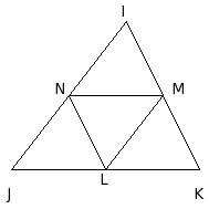 In the given figure, the area of the △IJK is x sq.cm. L,M,N are the mid-points of the sides JK , KI and IJ respectively. The area of the △LMN is