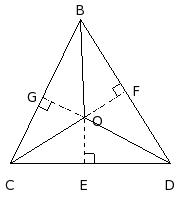 In the given figure, in △BCD, 'O' is a point inside the triangle. OE ⟂ CD, OF ⟂ BD and OG ⟂ BC. Then