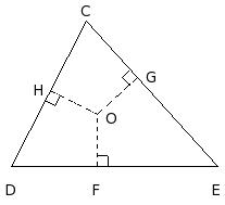 In the given figure, in △CDE, 'O' is a point inside the triangle. OF ⟂ DE, OG ⟂ CE and OH ⟂ CD. Then