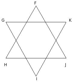 In the given two equilateral triangles, find ∠F + ∠H + ∠J + ∠G + ∠I + ∠K .