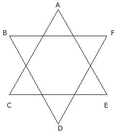 In the given two equilateral triangles, find ∠A + ∠C + ∠E + ∠B + ∠D + ∠F .