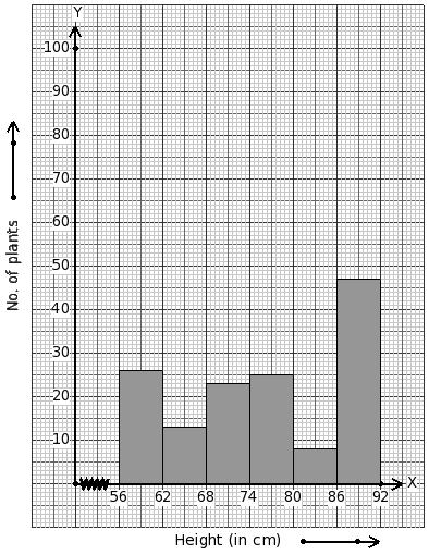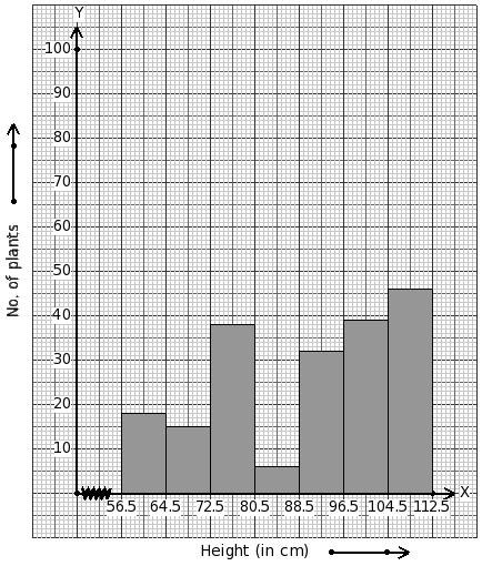 Heights of 194 plants (in cm) are given below. Identify the class mark table for the given histogram.
