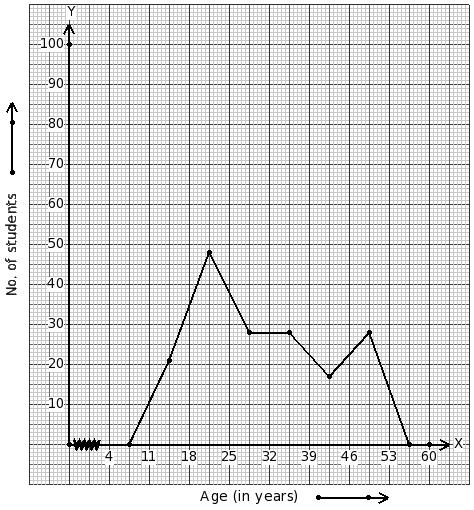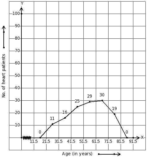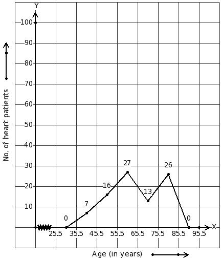 Given frequency polygon showing the number of heart patients at various age groups, identify the class interval table.