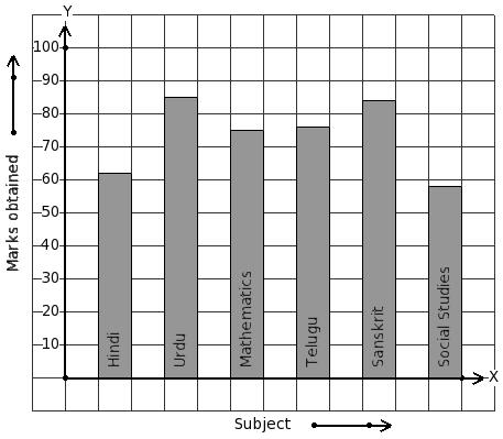 The marks obtained by Raju in his annual exam are shown below. Find the subject that has maximum score.