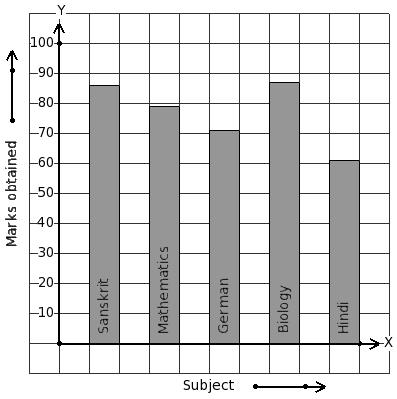 The marks obtained by Pavan in his annual exam are shown below. Find the subject that has minimum score.