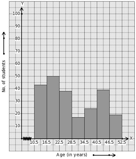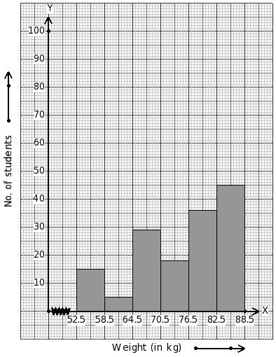 Weights of 148 students (in kg) are given below. Identify the class mark table for the given histogram.