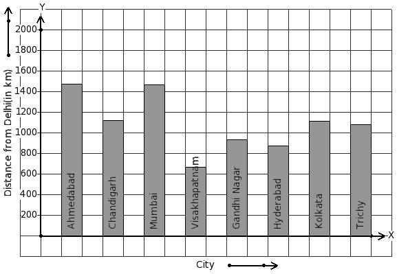 The air distance of some cities from Delhi (in km) are given below. Find the city that has maximum distance.