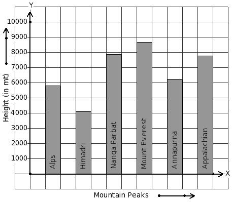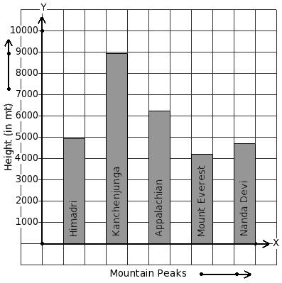 Given below is the column-graph showing heights of some mountain peaks. Find the mountain that has minimum height.