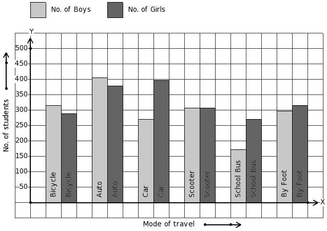 3717 students of a school use different modes of travel to school. Identify the table for the given bar diagram.