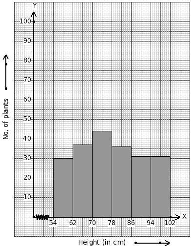 Heights of 209 plants (in cm) are given below. Identify the class mark table for the given histogram.