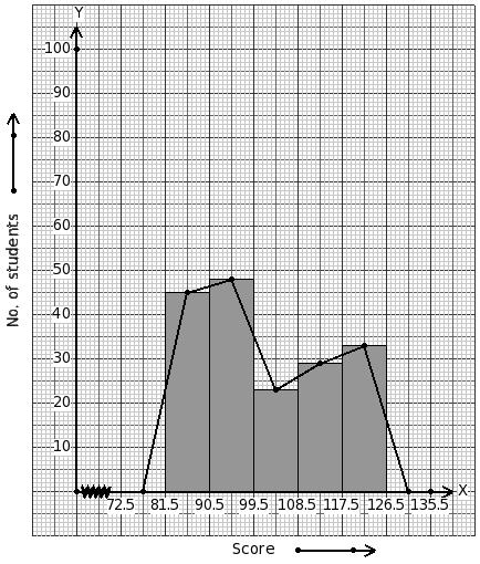 Scores of 230 students are given below. Identify the class mark table for the given histogram.