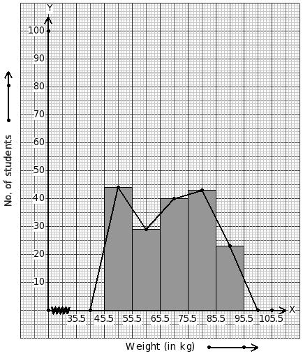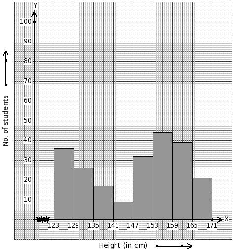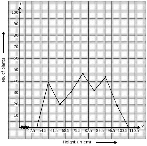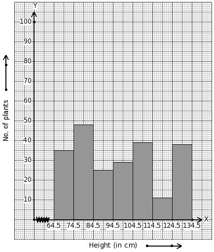 Heights of 225 plants (in cm) are given below. Identify the class mark table for the given histogram.