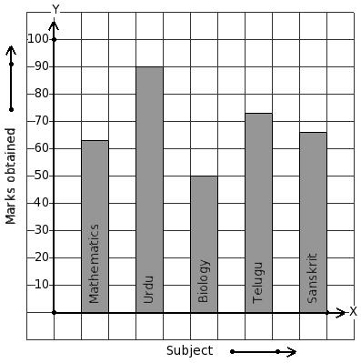 The marks obtained by Arun in his annual exam are shown below. Find the subject that has maximum score.