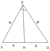 In the given figure, given ∠HEF = ∠GEH, x : y = 9.24 cm : 9.76 cm and q = 19 cm, find p =