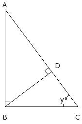 In the given figure, ∠DBC = 36.87°, find the value of y =