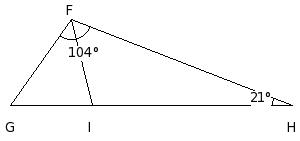 In the given figure, I is a point on side GH of △FGH such that ∠HFG = ∠FIH = 104° , ∠IHF = 21°. Find ∠HFI