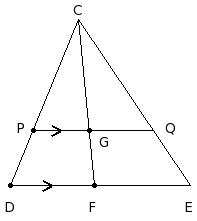 In the given figure, PQ ∥ DE , and median CF bisects PQ.