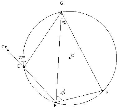 In the given figure, O is the centre of the circle. If ∠GEF = 73° and ∠CDG = 77°, find ∠EGF