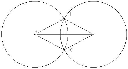 In the given figure, H and I are centres of two circles with equal radii intersecting at J and K. If HI = 20 cm and JK = 10.6 cm, find the radii of the circles