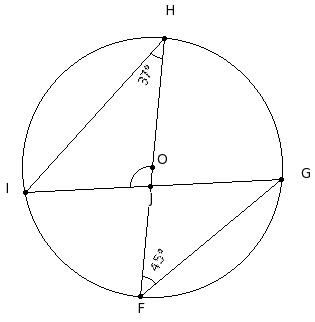 In the given figure, O is the centre of the circle. If ∠GFH = 45° and ∠FHI = 37°, find ∠HJI