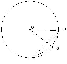 In the given figure, GH is a side of regular 8-sided polygon and GI is a side of regular 10-sided polygon inscribed in a circle with centre O. Find ∠GHI