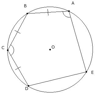 In the given figure, a pentagon is inscribed in a circle with centre O. Given AB = BC = CD , ∠BCD = 117° and ∠EAB = 103°. Find ∠ABC