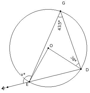 In the given figure, O is the centre of the circle. If ∠DGE = 43.5° and ∠ODG = 38°, find ∠FEG