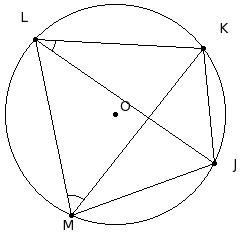In the given figure, JKLM is a cyclic quadrilateral. If ∠JLK = 32° and ∠LMK = 50°, find ∠JKL